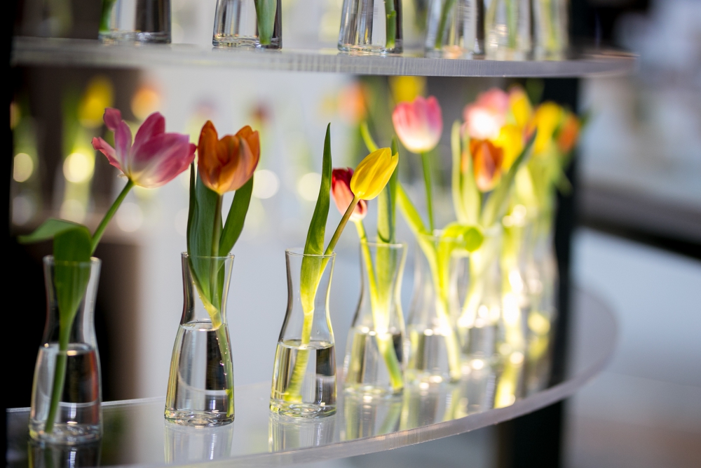 - ชั้น 1 ทักทายเหล่าแขกผู้มาเยือนด้วยกลิ่นหอมชวนหลงใหลและความอลังการของโซนทางเดินที่ประดับประดาไปด้วยดอกไม้สดนานาพันธุ์ซึ่งวางแซมสลับกันในเฉดสีชมพูอ่อนและขาวอย่างลงตัว จนอดไม่ได้ที่จะเก็บภาพความประทับใจตั้งแต่วินาทีแรก
