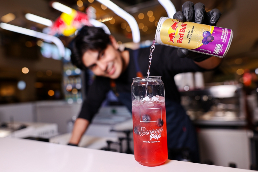สัมผัสประสบการณ์ม็อกเทลเอนเนอร์จี้สูตรพิเศษ ผ่านศาสตร์การผสมผสานเครื่องดื่ม (Mixology) ที่หลอมรวมเทคนิคความเชี่ยวชาญของบาร์เทนเดอร์และบาริสต้ามาไว้ด้วยกันที่ผสานความสดชื่นจากเรดบูลโซดากับวัตถุดิบสุดพรีเมียม จนเกิดเป็นรสชาติอร่อยลงตัวและมีเอกลักษณ์ ที่พร้อมมอบความสดชื่นและพลังงานในแบบที่ไม่เคยมีมาก่อน ให้ทุกแก้วเต็มไปด้วยมิติของรสชาติและเอนเนอร์จี้ พร้อมปลุกพลังความสดชื่นในตัวคุณให้ไปต่อได้อย่างไร้ขีดจำกัด พร้อมเมนูซิกเนเจอร์ที่ไม่ควรพลาด อย่าง Red Bull Blackcurrant Shortbread เติมเอเนอร์จี้ด้วยส่วนผสมตระกูลเบอร์รี่ เข้ากับ เรดบูลโซดารส “บลูเบอร์รี แบล็กเคอร์แรนต์” ให้ความสดชื่นแบบสุด ๆ หรือ Red Bull Pomelo Blast เพิ่มความหวานเปรี้ยวซ่าแบบลงตัวของผลไม้ เข้ากับ กับ เรดบูลรส “เกรปฟุตและสับปะรด” ให้ช่วงบ่ายที่ต้องการความสดชื่นแถมเติมพลังงานแบบลงตัว และ Red Bull Winery with Espresso Shot จากเมล็ดกาแฟเอธิโอเปียที่ให้ความสดชื่นของผลไม้ ผสมกับ เรดบูลรส “แอปเปิ้ลเขียวกับองุ่นมัสแกต” กลิ่นหอม ๆ จาก แอปเปิ้ล ผสมกับกลิ่นหอมที่เป็นเอกลักษณ์ขององุ่นเขียวไชน์มัสแกตให้รสชาติที่เข้ากันอย่างลงตัว