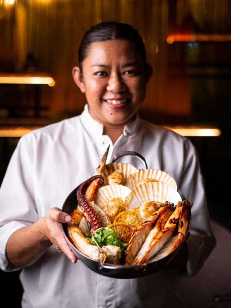 เมนูจานนี้คือการเฉลิมฉลองความงดงามของ “Fruits de Mer” หรือของขวัญจากท้องทะเล ที่ถูกคัดสรรมาอย่างดี ไม่ว่าจะเป็นขาปูคิงแคร็บชิ้นโต หมึกสเปนเนื้อนุ่มเด้ง กุ้งลายเสือไซส์ใหญ่เต็มคำ และหอยเชลล์สดที่ถูกย่างจนหอมฉุย ทุกชิ้นผ่านการปรุงอย่างพิถีพิถันโดยเชฟผู้เชี่ยวชาญ ซึ่งเน้นรักษารสธรรมชาติของวัตถุดิบไว้ให้เด่นชัดที่สุด