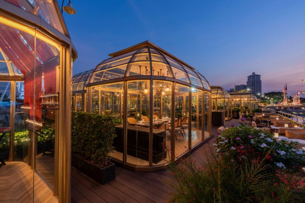 บรรยากาศภายในร้านก็ไม่ธรรมดา ไม่ว่าจะเป็นโซนเรือนกระจกหรูที่ให้ความรู้สึกโมเดิร์นคลาสสิก หรือโซนระเบียงกลางแจ้งที่ให้คุณดื่มด่ำกับวิวแม่น้ำเจ้าพระยาในมุมที่ดีที่สุด ทุกพื้นที่ได้รับการออกแบบมาเพื่อให้เป็นมากกว่าร้านอาหาร แต่เป็นสถานที่สำหรับเก็บความทรงจำ
