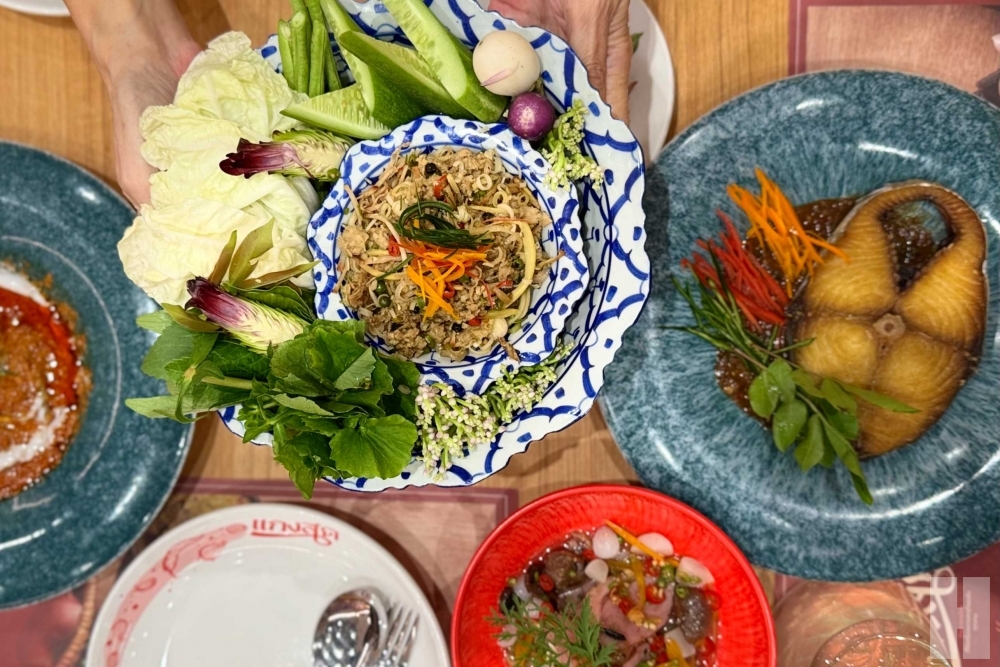 ฉู่ฉี่ปลาทูแม่กลอง เนื้อปลาทูแน่น เลาะก้าง ราดพริกแกงขลุกขลิก กลิ่นกะทิหอมมัน, ปลาร้าผัดทรงเครื่องสายเยาวภา เสิร์ฟพร้อมผักพื้นบ้านที่หากินยาก เช่น ดอกกระเจียว ใบกระเจี๊ยบ