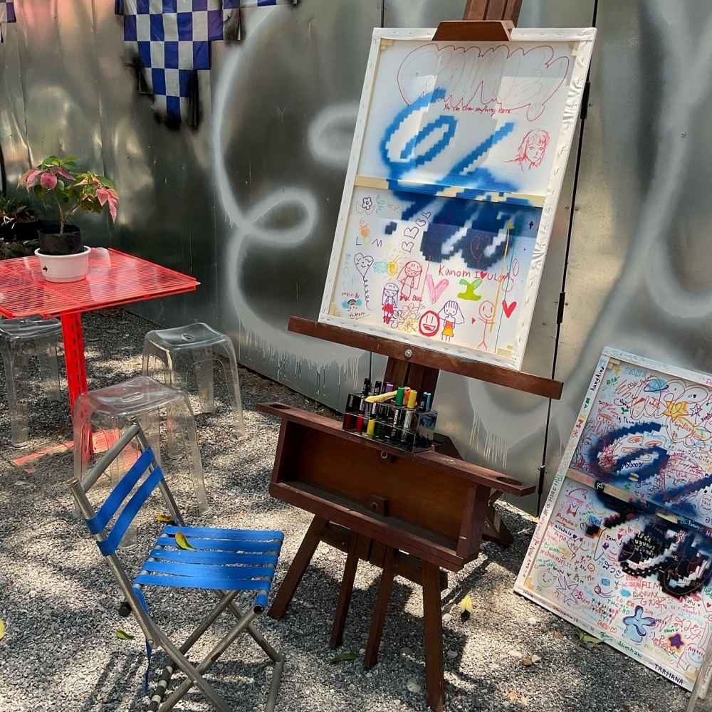 ในขณะที่บรรยากาศของคาเฟ่และอาร์ตสเปซที่เพิ่มเติมมาเพื่อตอบโจทย์ให้กับลูกค้าชาวเชียงราย ฟาโรห์ใส่ความสนุกลงไปในพื้นที่ทั้งภายในและภายนอกอาคาร