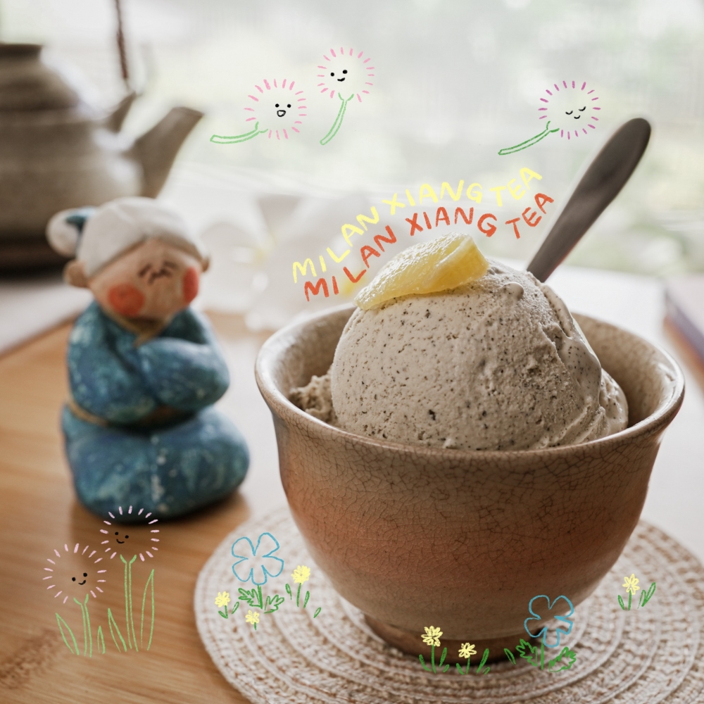 มี่หลันเซียง (Mi Lan Xiang Tea) ชาตานฉงจากแต้จิ๋วที่ชื่อแปลว่ากลิ่นกล้วยไม้น้ำผึ้ง พร้อมความหวานของผลไม้รสฉ่ำๆแบบพีช มีรส bittersweet อันเป็นเอกลักษณ์ของตานฉง ทำให้ตัดเลี่ยนกับไอติมออกมาได้พอดิบพอดี พัดเล่าว่าไอศกรีมรสนี้เป็นการพัฒนาร่วมกับร้านชา Gimbocha ของคุณยายสุดอบอุ่นตรง BTS สนามกีฬาแห่งชาติ