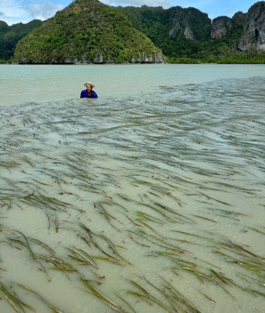 คณะประมง ร่วมกับ บางจาก คอร์ปอเรชั่น ริเริ่มโครงการ Blue Carbon ที่เกาะหมาก เมื่อปี 2564 ซึ่งเป็นช่วงเดียวกับที่หญ้าทะเลแถวนี้เข้าสู่จุดเปลี่ยน โดยหญ้าทะเลที่อยู่มาไม่รู้กี่สิบปี หายไปอย่างรวดเร็ว ทั้งลมแรงผิดปกติทำให้ทรายมากลบทับ ทั้งน้ำที่ร้อนจัดจนพุ่งขึ้นระดับออนเซน (ที่ตื้นที่ตรงหญ้าอยู่ 40 องศา) ทั้งน้ำลดต่ำแบบหาสาเหตุไม่เจอ หญ้าไหม้แห้งผาก โดยช่วงปี 2565-2566 หญ้าทะเลหายวูบ 80-90% พอถึงปี 2567-2568 เหลือแต่ตอ และเหลือเพียงไม่กี่ตอ และคงยากที่จะกลับมาเหมือนเดิมอีกแล้ว