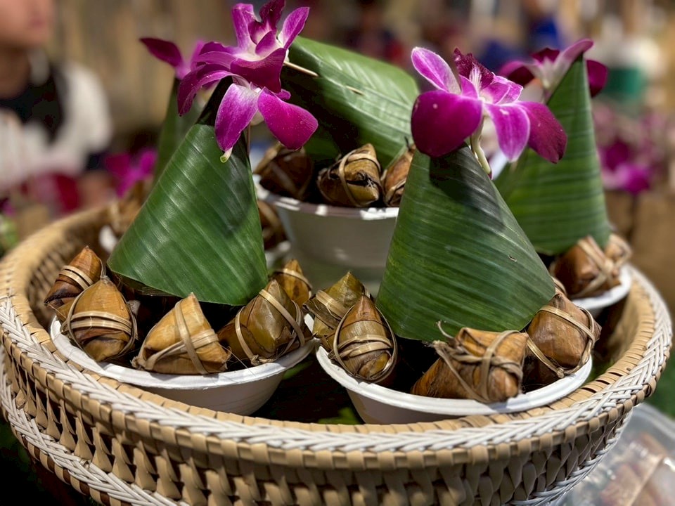 ตลาดโอ๊ะป่อยยังเป็นตลาดคาร์บอนต่ำ ใช้ภาชนะจากวัสดุธรรมชาติแทนพลาสติก นักท่องเที่ยวที่นำอาหารมาใส่บาตรจะใช้ภาชนะรักษ์โลกเสมอ “เราตั้งใจให้ตลาดนี้สะอาดทั้งกายและใจ” เขากล่าว