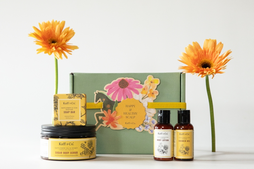 และเจลอาบน้ำดอกคำฝอยและใบบัวบก สูตร Sulfate-Free สำหรับทำความสะอาดผิวอย่างอ่อนโยน ไม่แห้งตึงหลังล้างออก โดยผสานคุณสมบัติเด่นของสารสกัดดอกคำฝอยและใบบัวบก ช่วยรักษาความชุ่มชื้นให้ผิวหนัง ปลอบประโลมผิวที่ระคายเคืองง่ายหรือมีผดผื่นคัน, สารสกัดว่านหางจระเข้ ช่วยรักษาร่องรอยจุดด่างดำบนผิวหนัง และดอกเกลือ ที่อุดมไปด้วยแร่ธาตุต่าง ๆ มากมาย ช่วยชะล้างสิ่งสกปรกและความมันส่วนเกิน รวมถึงสารพิษตกค้างตามผิว ช่วยให้ผิวดูเปล่งปลั่ง และกระชับยิ่งขึ้น Holidays Hair & Skin Care จึงเป็นเซ็ตที่มอบการดูแลจากธรรมชาติอย่างครบถ้วนในทุกวัน เหมาะสำหรับมอบให้คนพิเศษในช่วงเทศกาล หรือเป็นของขวัญแห่งการ Self-care & Self-love ให้ตัวเอง ราคาเริ่มต้น 1,395 บาท