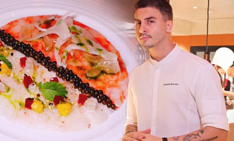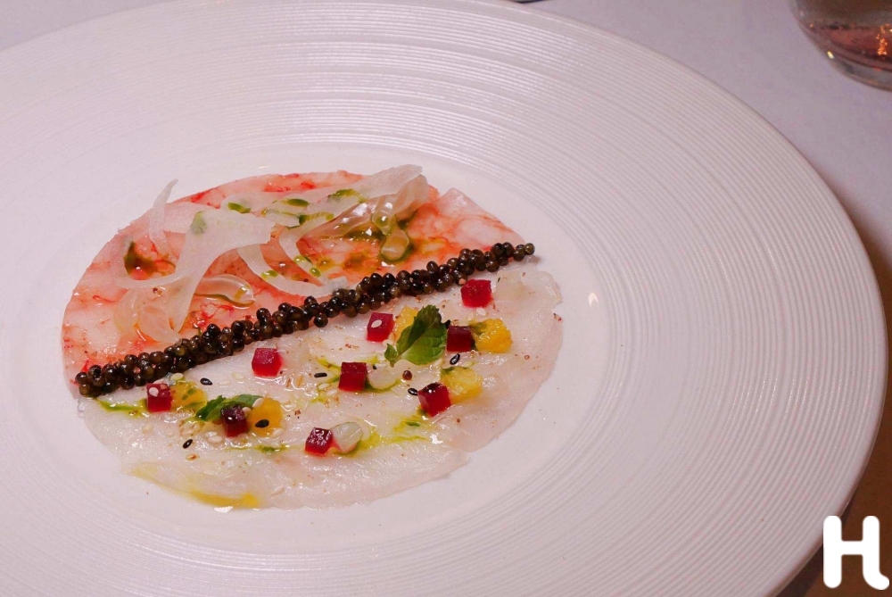 สำหรับเซ็ตเมนู Christmas Eve Set มาในรูปแบบแชร์ริ่ง เหมาะมากสำหรับครอบครัวหรือกลุ่มเพื่อนที่อยากเปิดโต๊ะเฉลิมฉลองร่วมกัน จานแรกเริ่มด้วย Carpaccio Di Spigola & Gamberi Rossi Di Mazara เมนูที่เชฟ Giuseppe Bonura เอ่ยปากเลยว่าชอบมากที่สุด เป็นปลากระพงขาวสดสไลด์บางเฉียบด้วยสกิลขั้นเทพ และกุ้งแดงมาซาร่า ราชินีแห่งท้องทะเลซิซิลี สวยสะกดทุกสายตา ได้รสสดหวานธรรมชาติ เติมความหอมด้วยผิวมะนาวและส้ม เสิร์ฟมาด้วยเฉดแดง–ส้ม ชวนให้นึกถึงของขวัญและลูกบอลคริสต์มาสบนต้นสน