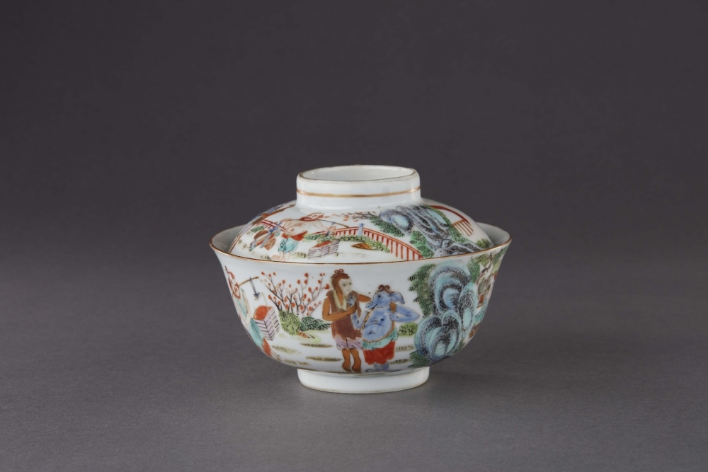 - เครื่องเบญจรงค์ ที่แสดงให้เห็นอิทธิพลร่วมกันระหว่างช่างไทยและจีน รวมถึงชามที่วาดภาพจากวรรณกรรมคลาสสิกจีนเรื่อง "ไซอิ๋ว" และอีกชามหนึ่งตกแต่งด้วยภาพจากเรื่อง "พระอภัยมณี"