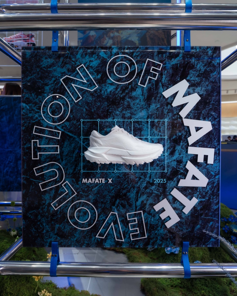 ภายในร้าน สเปซถูกออกแบบในโทนวัสดุธรรมชาติ ใช้เส้นสายที่ให้ความรู้สึกเคลื่อนไหวอย่างเป็นอิสระ ถ่ายทอดพลังของ “การเคลื่อนไหวที่ไร้ขีดจำกัด” ได้อย่างโดดเด่น คอลเล็กชันที่ถูกดึงมาเป็นพระเอกคือ Mafate Family ซึ่งเป็นตัวแทนของแนวคิด Trail-to-Street ที่นำความแข็งแรงจากรองเท้าวิ่งเทรลมาผสานกับดีไซน์สำหรับชีวิตในเมืองได้อย่างลงตัว