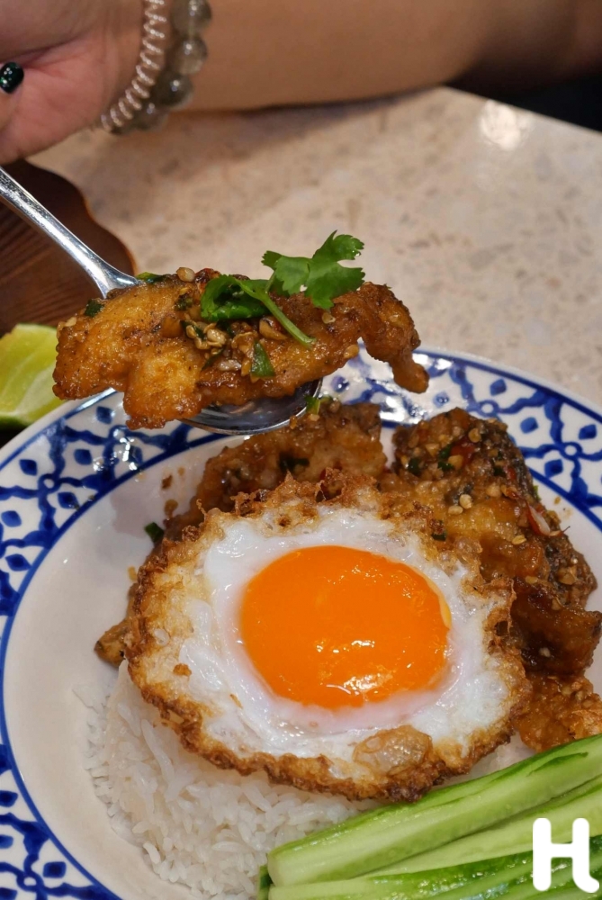 ข้าวเนื้อปลากะพงผัดพริกเกลือ กับไข่เป็ดดาวเยิ้มๆ เมนูจานเดี่ยวที่ดูเรียบง่ายแต่เต็มด้วยเท็กซ์เจอร์ ปลากะพงชิ้นใหญ่ ผัดหอมพริกเกลือจนได้กลิ่นโดดเด่น กินพร้อมไข่เป็ดดาวเยิ้มๆ เป็นความฟินที่เกินหน้าตา