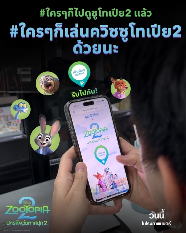 และถ้าคุณอยากรู้ว่าตัวเองเป็นสัตว์ตัวไหนใน Zootopia 2 ก็ไปเล่นกันได้ที่ https://zootopia2.disney.asia