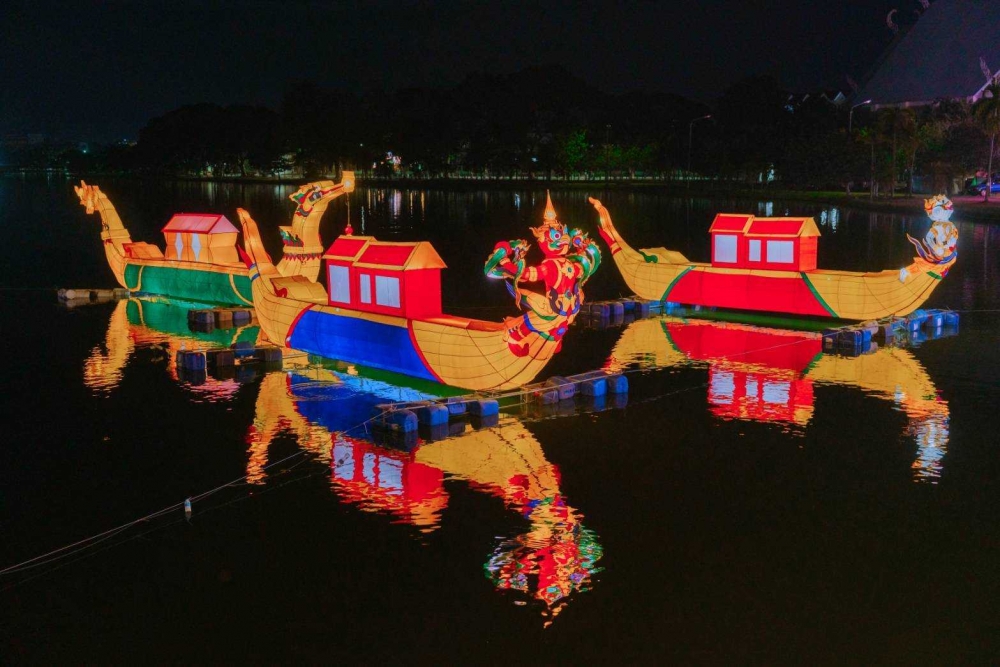 ไฮไลต์สำคัญคือการจัดแสดงหุ่นโคมไฟขนาดใหญ่กว่า 100 ชิ้นงาน จากทั้งไทย จีน และนานาชาติ ตั้งแต่มังกร หงส์ เทพเจ้า ไปจนถึงตัวละครแฟนตาซีที่ออกแบบขึ้นเฉพาะปีนี้ แสงไฟถูกใช้ไม่ใช่แค่เพื่อความสวยงาม แต่เพื่อสร้างบรรยากาศและอารมณ์ของพื้นที่ ทำให้อุทยานสวรรค์ในยามค่ำคืนกลายเป็นพื้นที่เดินเล่น ถ่ายภาพ และใช้เวลาอย่างช้าๆ
