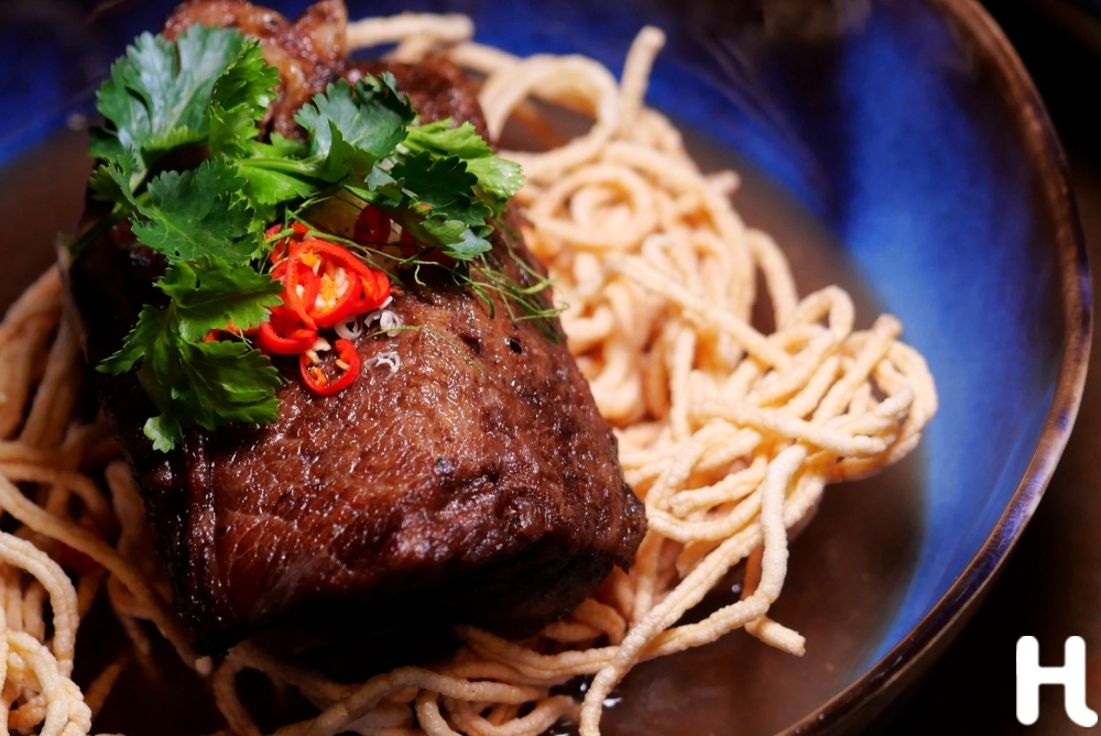 สายจานหนักไม่ควรพลาด Beef Short Rib Rat Na ราดหน้า (ที่หลายคนชิมบอกไม่ใช่ราดหน้า) ทางร้านใช้ซี่โครงวัวตุ๋นในน้ำซุปหอมลึก ราดบนเส้นกรอบฟู และตัดรสด้วยพริกดอง ออกมาเป็นเมนูเป็นราดหน้าที่จริงใจและตรงไปตรงมา