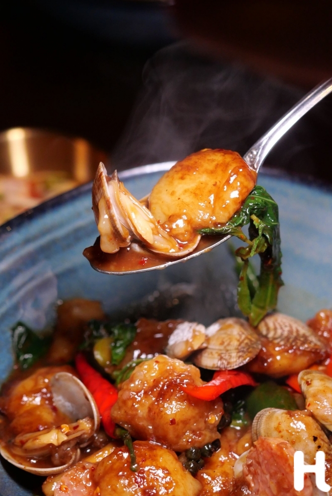 ส่วน Mochi Gnocchi คือความกล้าที่น่าจดจำ ญ็อกกีทำจากโมจิ ผัดแบบผัดขี้เมา คลุกเคล้าหอยอาซาริและแหนม ให้สัมผัสหนึบหนับกับรสจัดจ้านแบบไทยอย่างน่าประหลาดใจ