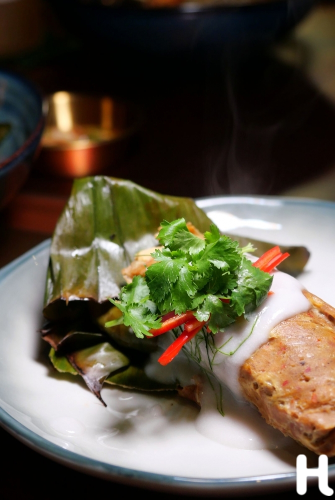 อีกเมนูแนะนำ Mok Monkfish เนื้อปลาที่ถูกห่อและปรุงในสไตล์หมก มากับแกงคั่ว ใบมะกรูด และกะทิ ให้รสชาติที่ทั้งอบอุ่นและลุ่มลึก เหมือนอาหารที่กินแล้วนึกถึงบ้าน แม้จะไม่รู้ว่าบ้านนั้นอยู่ภาคไหน