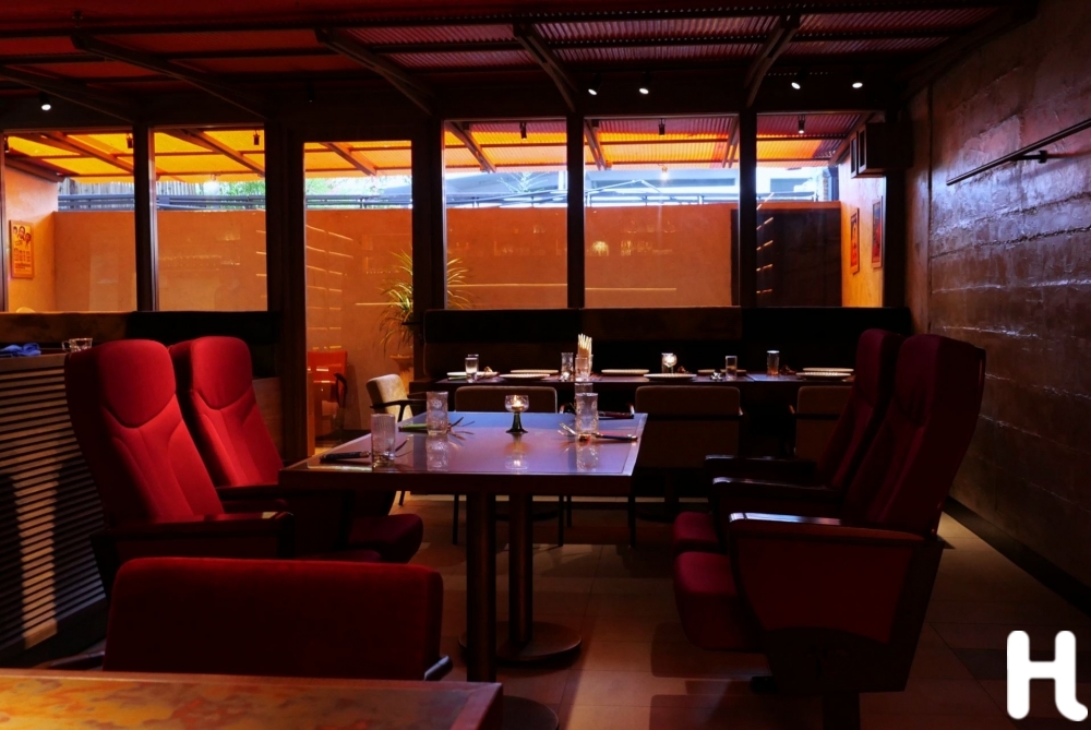 ตัวร้านรองรับราว 40 ที่นั่ง บรรยากาศเหมือนศาลาไทยริมน้ำที่ถูกดึงออกจากความทรงจำ แล้วตีความใหม่ในโทนดิบ เท่ และมีชีวิตชีวา เฟอร์นิเจอร์เก่าที่คัดสรรมาจากยุค 60s–70s ตั้งแต่เก้าอี้โรงหนัง บานประตูไม้พับ ไปจนถึงของสะสมชวนคิดถึงวันเก่าๆ ถูกจัดวางอย่างไม่ตั้งใจนัก แต่กลับลงตัว