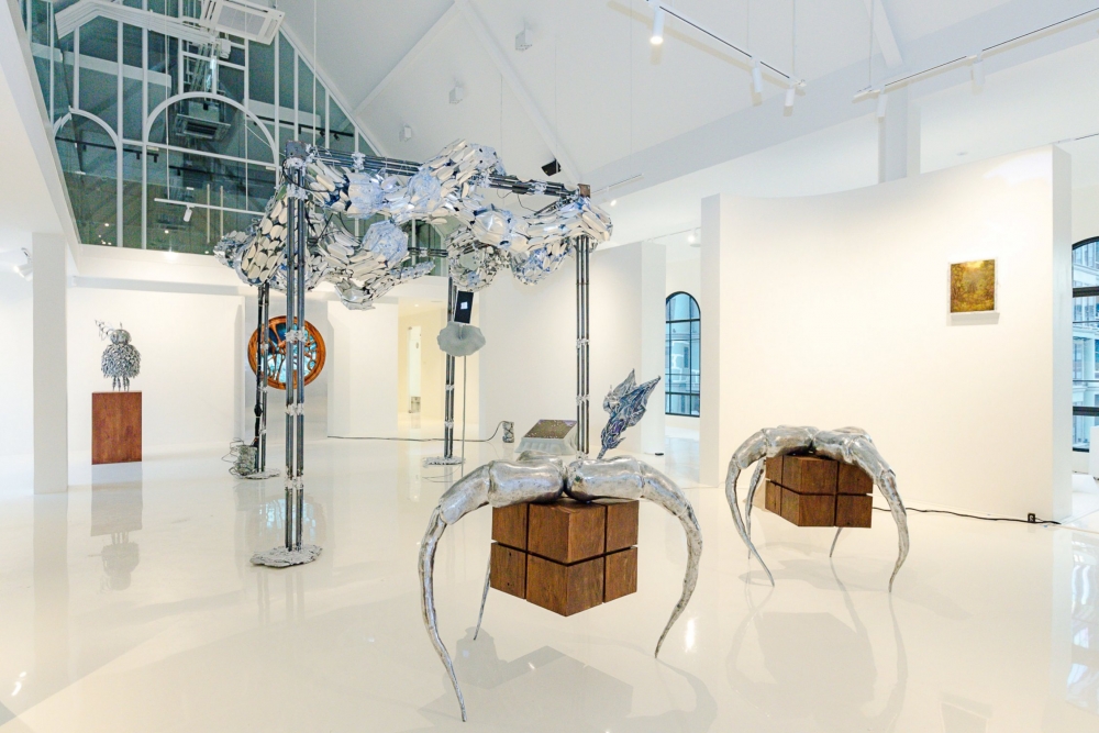 - ขณะที่ สวัชโรกร วรรณศร หยิบยกตำนาน ความเชื่อ และแบบแผนจากวัฒนธรรมภาคเหนือของไทยมาเป็นแรงบันดาลใจ สร้างสรรค์ผลงานที่พูดถึงการปกป้อง ความแข็งแกร่ง และความสัมพันธ์ระหว่างมนุษย์กับธรรมชาติ ผ่านพื้นผิวและวัสดุที่ให้สัมผัสทางกายภาพอย่างชัดเจน