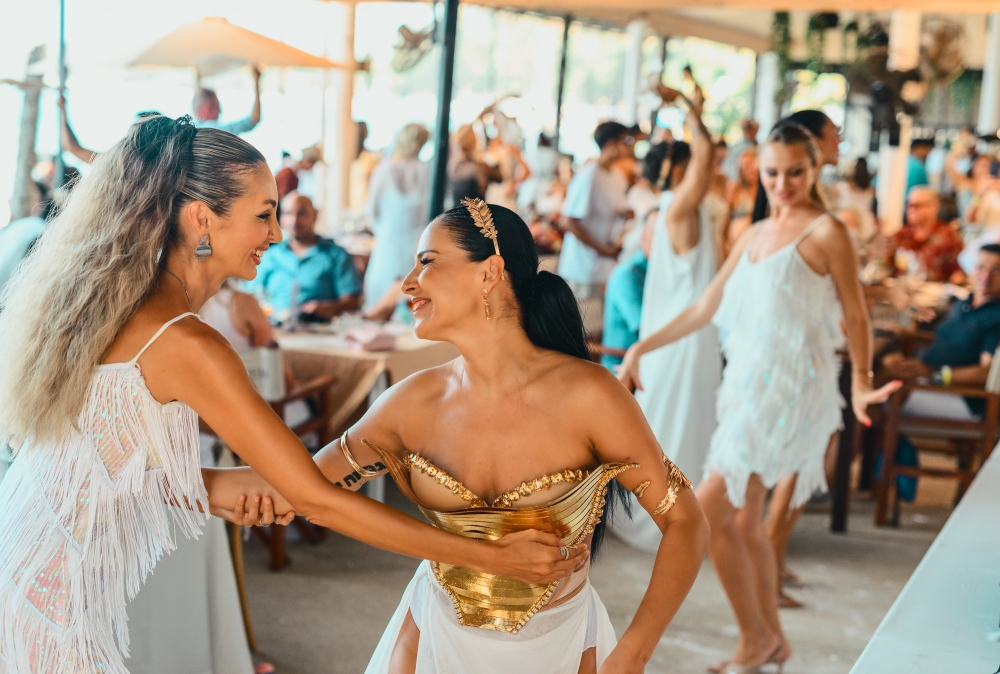 ช่วงเวลา 12.00–15.00 น. พื้นที่ของ Carpe Diem Beach Club ถูกเปลี่ยนเป็นบรันช์สไตล์กรีกเต็มขั้น!! ไม่ใช่แค่ไลน์อาหาร แต่เล่นใหญ่ทั้งบรรยากาศ การแสดงโชว์ การเต้นรำ ณ เวลานั้น เสียงเพลง เสียงหัวเราะ และเสียงปรบมือดังสลับกันแบบไม่ทิ้งช่วง