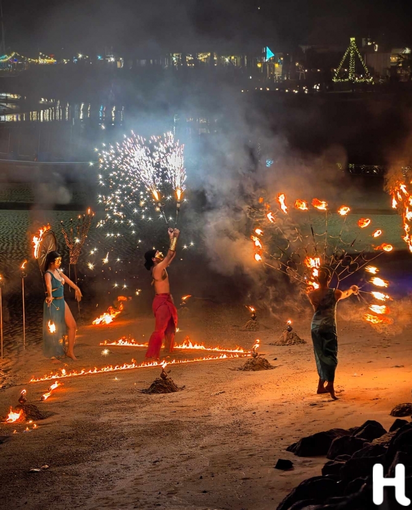 ...และความสุขก็มักผ่านไปไวเสมอ เผลอแปบเดียว แสงสีทองที่สะท้อนผิวน้ำก็ค่อยๆ เข้มขึ้น วิวทะเลเริ่มมีดวงไฟปรากฏ ก่อนจะปิดท้ายค่ำคืนด้วยการแสดงโชว์ควงไฟริมชายหาด อีกภาพที่ยากจะลืม หากเราได้อยู่ตรงนั้นจริงๆ