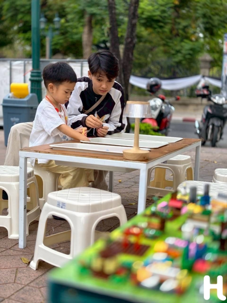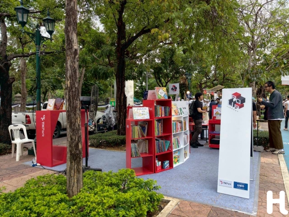 ไฮไลต์สำคัญคือ “Pop-up Library” จาก TK Park ที่มาในรูปแบบห้องสมุดชั่วคราวแต่ใช้งานได้จริง ภายในไม่ได้มีแค่หนังสือกว่า 400 เล่ม แต่ยังมีบอร์ดเกม เลโก้ และอุปกรณ์ศิลปะ เพราะหัวใจของการเรียนรู้ยุคใหม่คือการ ‘เล่น’ และ ‘เรียน’ ไปพร้อมกัน
