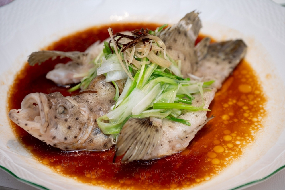 Scallion-Scented Tianmu Bamboo Shoots หน่อไม้เทียนมู่ผัดต้นหอม, Black Pepper Baked Crab ปูผัดพริกไทยดำ และ Steamed Parrot Fish with Dried Tangerine Peel ปลานกแก้วนึ่งผิวส้ม ทุกจานไม่ได้โดดเด่นแค่รสชาติ แต่ยังแฝงความหมายมงคลและเรื่องราวของความอุดมสมบูรณ์ตามวัฒนธรรมจีนอย่างประณีต
