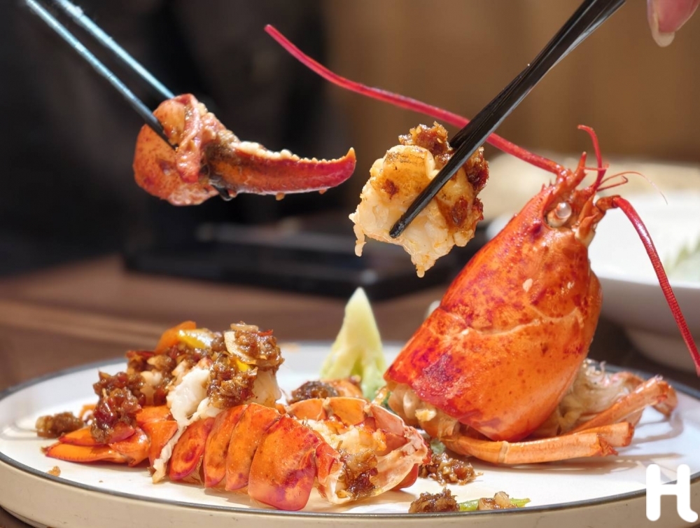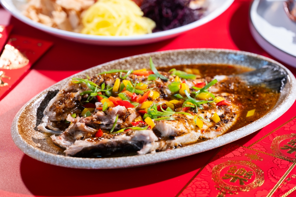 ล็อบสเตอร์ผัดซอสเอ็กซ์โอ & ปลาเก๋าดำนึ่งเต้าซี่ ปลาในความหมายจีนคือ “เหลือกินเหลือใช้” ทุกปีต้องมีปลาเพื่ออวยพรให้มีทรัพย์ไม่ขาดมือ ขณะที่ล็อบสเตอร์สีแดงสื่อถึงความเป็นสิริมงคลและความสุข
