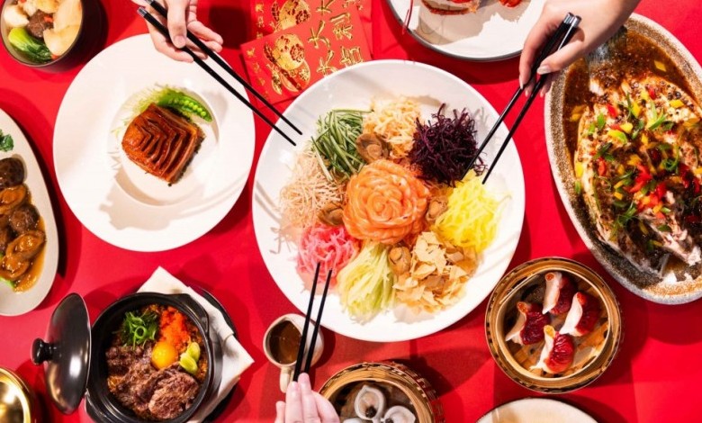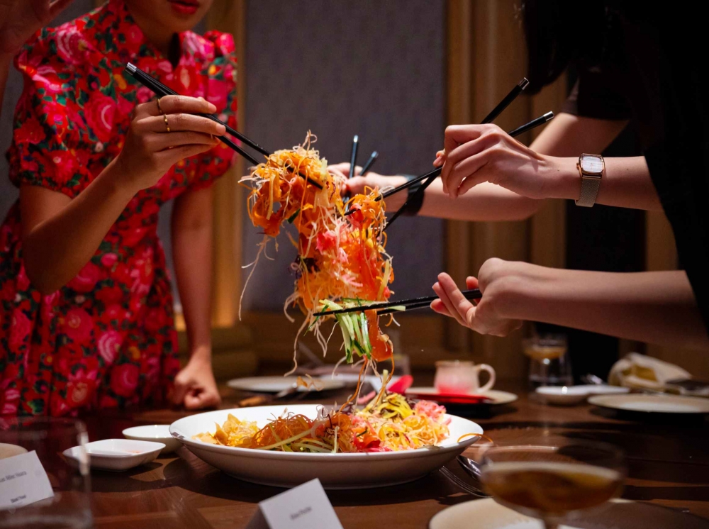 หยี่ซัง (Yu Sheng) สลัดปลาแซลมอนสด ธรรมเนียมสำคัญของตรุษจีนที่ขาดไม่ได้ “หยี่” แปลว่า ปลา พ้องเสียงกับคำว่าอุดมสมบูรณ์ ส่วน “ซัง” หมายถึงดิบ พ้องเสียงกับความเจริญงอกงาม เมื่อทุกคนยืนล้อมวง ใช้ตะเกียบคลุกและคีบสลัดให้สูงที่สุด เชื่อกันว่ายิ่งยกสูงเท่าไร ความสำเร็จและโชคลาภจะยิ่งเพิ่มพูน