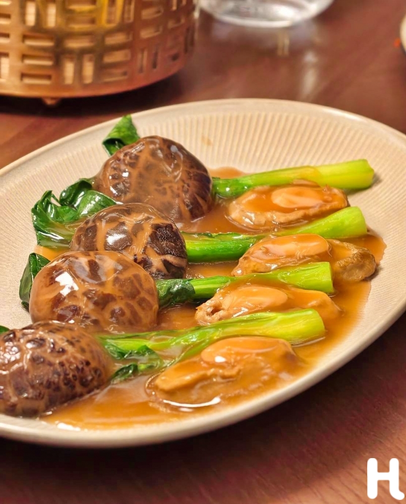 หอยเป๋าฮื้อเจี๋ยนคะน้าฮ่องกงและเห็ดหอม ในอดีตคืออาหารจักรพรรดิ เป๋าฮื้อจึงหมายถึงความมั่งคั่ง อายุยืน และเกียรติยศ