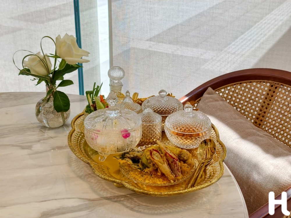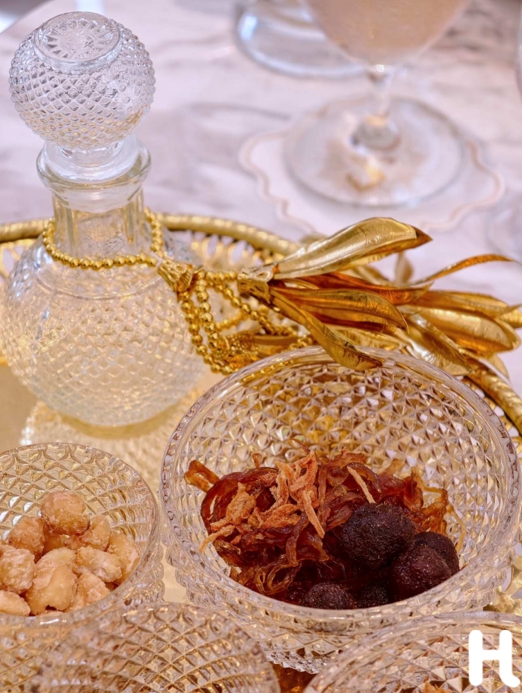 ความพิเศษของสำรับนี้ คือการผสานความโดดเด่นของ “ข้าวแช่เมืองเพชร” ที่ขึ้นชื่อเรื่องรสชาติเข้มข้น เข้ากับความประณีตแบบชาววังที่เน้นรูปลักษณ์และรสสัมผัสที่ซับซ้อน ประกอบด้วย “ลูกกะปิทอด” ตัวเอกของเครื่องเคียงที่ถอดแบบตำรับเดิมของเมืองเพชรบุรี หอมกะปิชั้นเลิศที่ผ่านการปรุงอย่างพิถีพิถัน