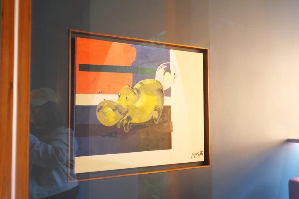 และหากสังเกตดี ๆ จะพบ “เจ้าหมูเด้ง” งานศิลปะที่ปรากฏอยู่บนผนัง ซึ่งกลายเป็นเหมือนผู้ต้อนรับผู้มาเยือน