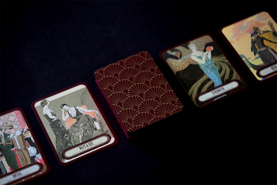 ไพ่ชุดแรกที่ทำคือ The Gatsby Love & Wisdom Oracle ใช้ภาพจากพิพิธภัณฑ์ที่เปิดให้ดาวน์โหลดฟรีมาใช้ เขียนคำบรรยายโดยไม่มีความรู้เรื่องโหราศาสตร์ใดๆ อาศัยความรู้ทางประวัติศาสตร์ศิลปะนำทาง ยุคแกสบี้เป็นยุคอะไร มีบริบททางสังคมยังไง แฟชั่นการแต่งตัวของผู้หญิงเป็นยังไง