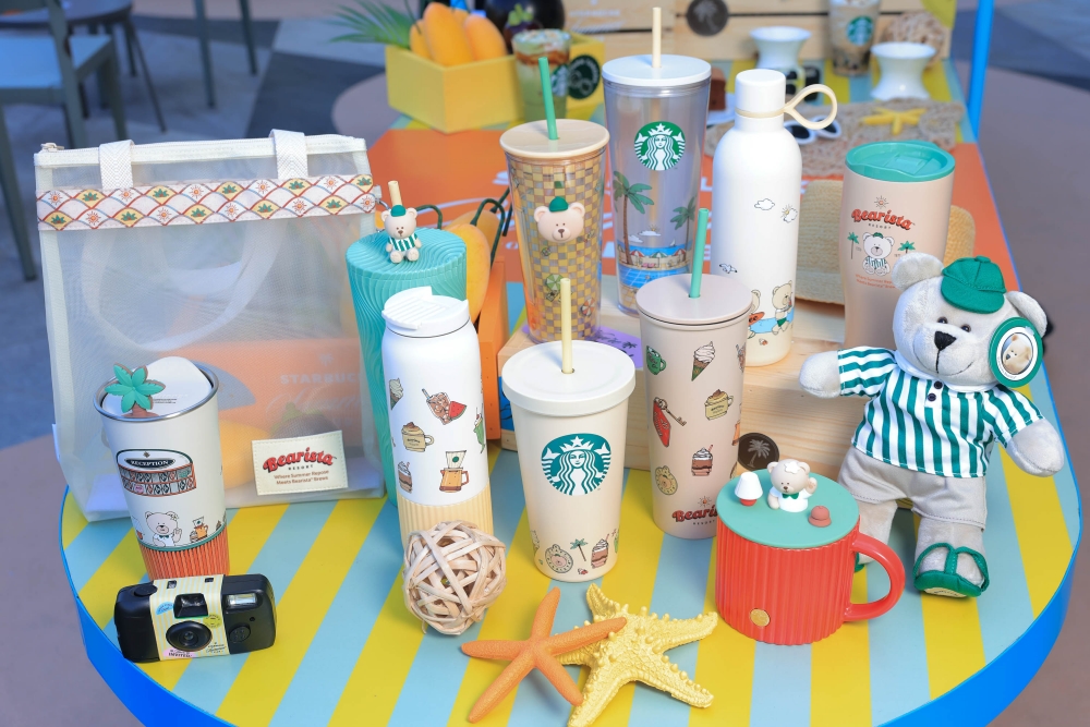 อีกความพิเศษของซัมเมอร์นี้คือ สตาร์บัคส์พาทุกคนไปสัมผัสบรรยากาศหน้าร้อนริมทะเลกับคอลเลกชันดริ๊งก์แวร์ Bearista Resort พาดื่มด่ำช่วงเวลาแห่งความสุขในฤดูร้อน หลีกหนีความวุ่นวายสู่บรรยากาศรีสอร์ตริมทะเลแสนอบอุ่นและผ่อนคลาย คอลเลกชันนี้โดดเด่นด้วยลวดลายและดีไซน์น่ารักของน้องหมี Bearista ในบทบาทพนักงานรีสอร์ต พร้อมโทนสีอบอุ่นและสดใสของช่วงฤดูร้อน สร้างความรู้สึกผ่อนคลายเหมือนได้ไปพักผ่อนในรีสอร์ตคลาสสิกที่เป็นกันเอง รายล้อมด้วยต้นปาล์ม มอบความสุขและความสดชื่นให้กับทุกการจิบเครื่องดื่มของคุณ