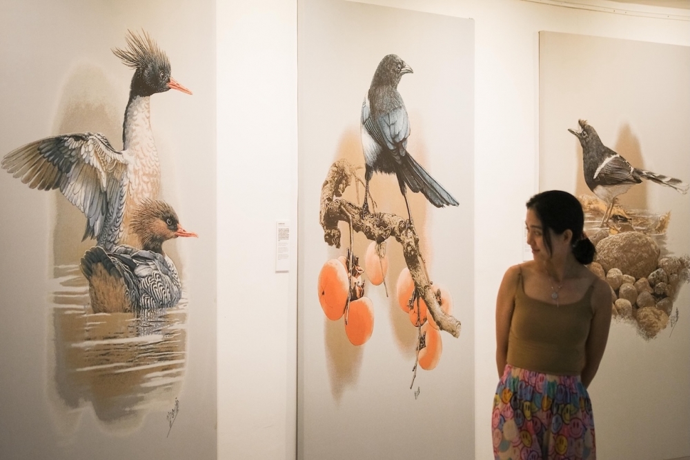 หนึ่งในไฮไลต์สำคัญคือผลงานสิ่งทอขนาดใหญ่ที่ถ่ายทอดจากงานต้นฉบับของศิลปิน ทั้งลายเส้นสถาปัตยกรรมของอาจารย์นิธิ สถาปิตานนท์ ไปจนถึงความงามของโลกพฤกษศาสตร์จากศิลปินไทยและต่างประเทศ ซึ่งถูก “แปล” ใหม่ผ่านเทคนิคการทอที่ซับซ้อนและใช้เวลานาน บางชิ้นใช้เส้นด้ายจากขวดพลาสติกรีไซเคิล บางชิ้นผสมเส้นใยเมทัลลิกเพื่อสร้างมิติของแสงและพื้นผิว ทำให้ผลงานไม่ใช่แค่ภาพให้มอง แต่เป็นวัตถุที่สะท้อนความสัมพันธ์ระหว่างมนุษย์ เทคโนโลยี และธรรมชาติอย่างแนบแน่น