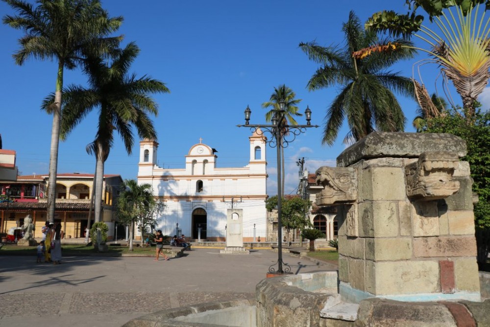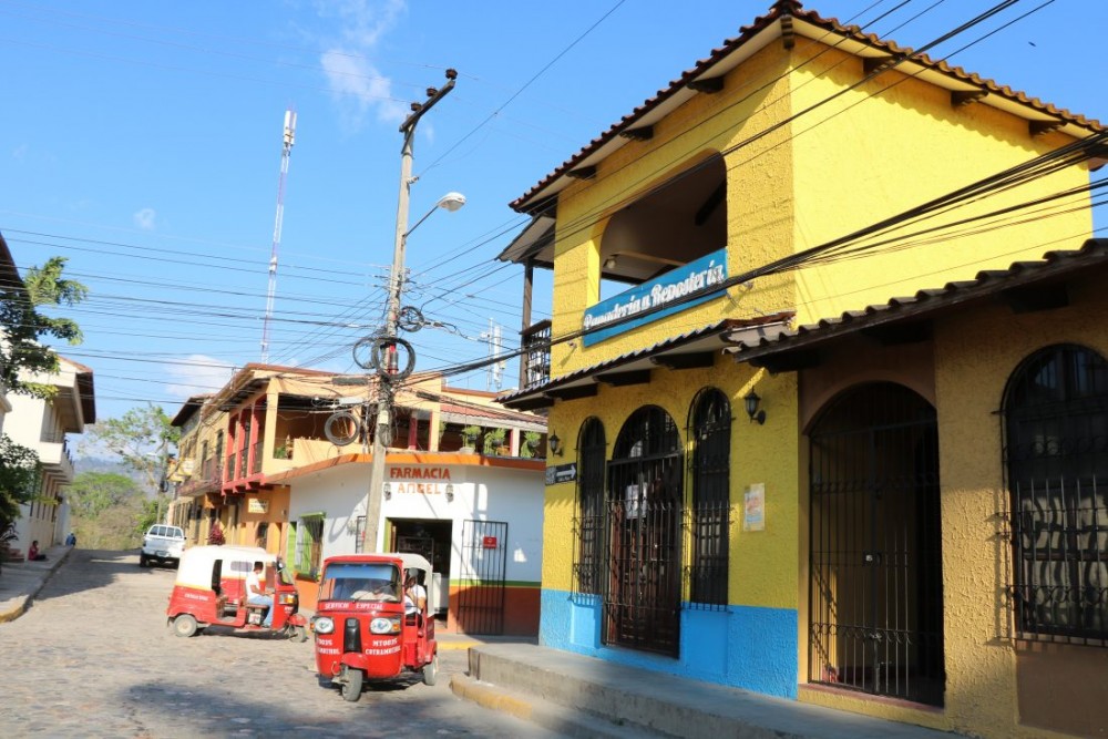 บ้านทุกหลังจะมีลูกกรงแบบนี้จากด่าน ผมเดินทางต่อไปยังเมืองโกปัน รูอินาส (Copán Ruinas) ที่เป็นศูนย์กลางตั้งต้นสำหรับผู้เดินทางมาชมอารยธรรมมายันยุคคลาสสิคที่นี่โกปัน รูอินาสเป็นเมืองเล็ก ๆ ที่มีผังเมืองแบบเมืองอาณานิคมสเปนที่พบได้ทั่วไปในละตินอเมริกา กล่าวคือมีจตุรัสเล็ก ๆ กลางเมืองพร้อมสวนสาธารณะและลานน้ำพุ และจตุรัสนี้จะล้อมรอบด้วยโบสถ์ ตลาด และอาคารสำคัญ ๆ