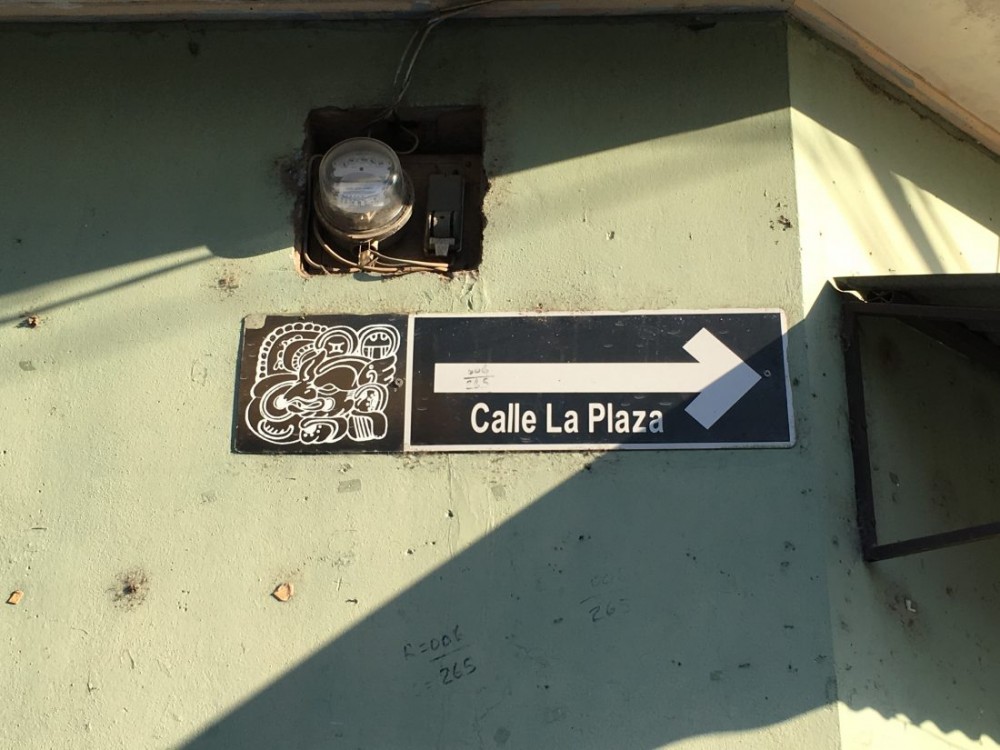 ป้ายบอกชื่อถนนของที่นี่จะมีอักษรภาพของมายันยุคคลาสสิคกำกับไว้เสมอ