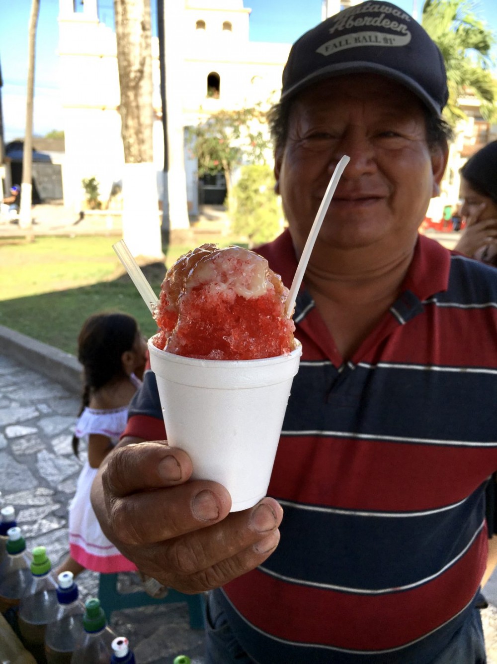 รถขายน้ำแข็งไสใส่น้ำหวานใกล้ๆ จตุรัส ผมแว่บเข้าไปดูพิพิธภัณฑ์ว่าด้วยเรื่องอารยธรรมมายันที่ตั้งอยู่แถวนั้น แล้วพบว่าภัณฑารักษ์เป็นคุณป้าใจดีมาก ๆ เพราะป้ายอธิบายเกือบ 90 % เป็นภาษาสเปนที่ผมเข้าใจได้ไม่ถึงครึ่ง“ไม่ต้องห่วงค่ะ... ฉันชื่อโซเฟียนะคะ ฉันจะพาซินยอร์เดินดูเอง ภาษาอังกฤษฉันก็ไม่ดีนัก โปรดให้อภัยฉันด้วย” แล้วเธอก็พาผม ซึ่งเป็นแขกคนสุดท้ายของพิพิธภัณฑ์เดินชมอย่างละเอียดจนถึงเวลาปิดทำการตอน 6 โมงครึ่งสารภาพเลยครับว่าเกิดมาผมไม่เคยประทับใจเจ้าหน้าที่พิพิธภัณฑ์ไหนเท่าที่ประเทศดุ เถื่อน ดิบ อย่างที่ฮอนดูรัสนี้ และเมื่อผมกล่าวขอบคุณแล้วขอบคุณอีกพร้อมกับขออนุญาตถ่ายรูปเธอเป็นที่ระลึก แต่เธอตอบเพียงว่า“อย่าเลยค่ะ ฉันแค่ทำหน้าที่ของฉันให้ดีที่สุด แล้วมาอีกนะคะ”เมื่อฟ้าก็เริ่มมืด ซินเดอเรลล่าอย่างผมก็ควรจะรีบกลับที่พักเพราะว่านี่มันเมืองโค-ตะ-ระอันตรายใช่ไหมครับ?แต่.... ผมได้ยินเพลงสวดอันแสนไพเราะแว่วมาจากโบสถ์แถว ๆ จตุรัส นั่นคงเป็นพิธีมิสซาช่วงเย็น ผมจึงเดินไปนั่งฟังจนค่ำมืดดึกดื่นก่อนเดินกลับที่พักแบบชิลชิล.... เพื่อนใหม่ชาวฮอนดูรัสในโบสถ์เดินมาส่งผมที่ที่พักกันอย่างสนุกสนาน ก่อนที่จะกล่าวอำลาด้วยคำว่า Buenas Noches ซึ่งเป็นคำภาษาสเปนอันแปลว่าราตรีสวัสดิ์นั่นเอง