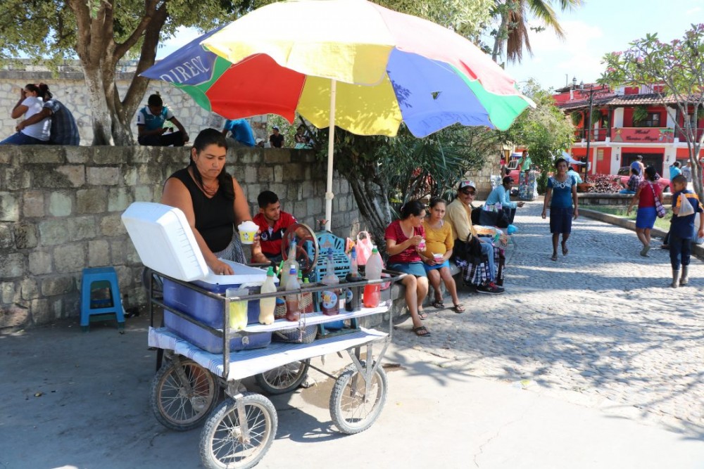 ตุ๊กตุ๊กในเมืองโกปันรูอินาส“เอาวะ.. นี่เพิ่ง 4 โมงเอง ค่ำ ๆ สัก 6 โมงค่อยกลับมาละกัน” ผมวางแผนในใจพร้อมกับเดินออกไปสำรวจเมืองโกปัน รูอินาสเสียงมาริมบ้าหวานลอยมาจากร้านกาแฟเล็ก ๆ ที่ตกแต่งด้วยสารพัดสีอย่างสนุก นักดนตรีใจดียิ้มให้นักเดินทางที่ผ่านไปมาอากาศร้อนพาให้แม่ค้าขายน้ำแข็งใสมีลูกค้าทั้งเด็กและผู้ใหญ่มารอต่อคิวกันแน่นรอบจตุรัส ทุกคนดูเป็นมิตร ถ้อยทีถ้อยรอ ไม่มีใครเร่งหรือหงุดหงิด และเมื่อผมกำลังลังเลว่าจะเลือกน้ำหวานรสอะไรดี“รสมะม่วงเลย แล้วตบด้วยนมข้นหวานเยอะ ๆ นะ ไม่อร่อยให้เตะ” เด็กวัยรุ่นท้องถิ่นเชียร์ผมกันลั่น และยิ้มดีใจเมื่อผมหันไปยกนิ้วโป้งกด Like ให้กับน้ำแข็งใสถ้วยอร่อยถ้วยนี้