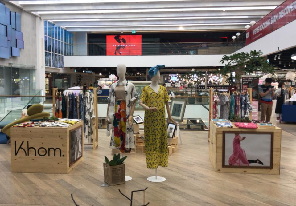 จากลวดลายที่สะสมไว้กว่าพันลาย ผ่านการตีความใหม่ จับคู่สีให้ทันสมัย ใช้แพทเทิร์นที่เทียบได้กับแบรนด์ต่างประเทศ ให้ผลลัพธ์เป็น Khom ไลน์เสื้อผ้าของโขมพัสตร์รุ่นล่าสุด เลือกชมรีสอร์ท คอลเลคชั่นทั้งเดรส เชิ้ตยาว กระโปรง กางเกงและเชิ้ตผู้ชาย กันได้ในป๊อปอัพ สโตร์ ชั้น 4 สยามดิสคัฟเวอรี่ โซนอีโคโทเปีย หน้าทางเข้าพิพิธภัณฑ์หุ่นขี้ผึ้งมาดาม ทุสโซด์ ถึงวันที่ 18 เมษายนนี้ และจะมีโครงการเปิดคอร์เนอร์ต่อไป