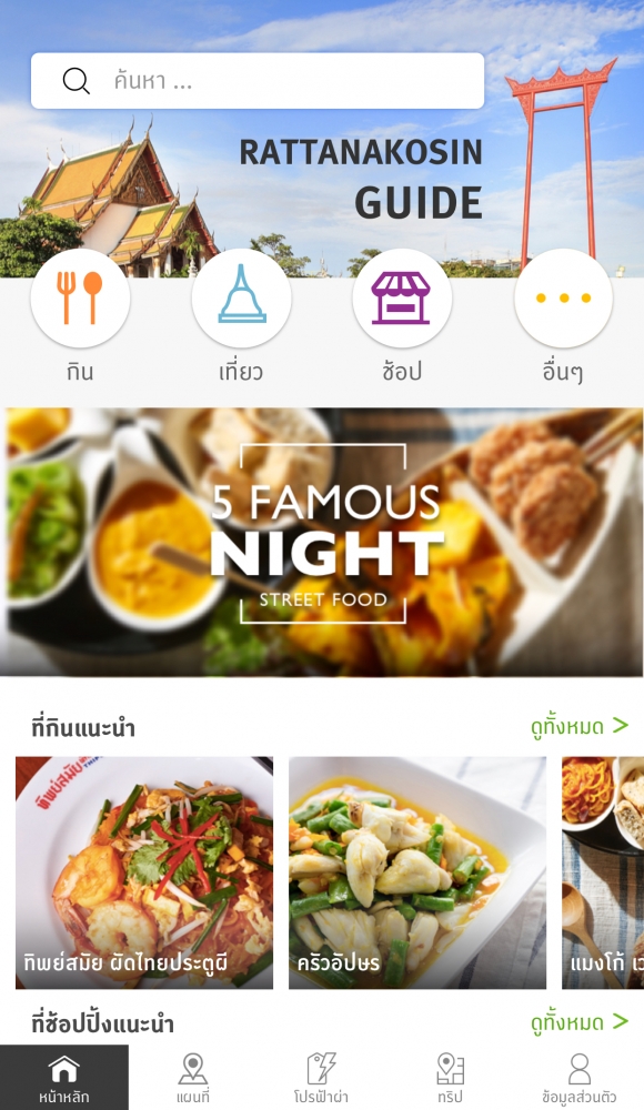 แต่ถ้าเข้าหมวดใดหมวดหนึ่งแล้วข้อมูลข้างในนั้นดูจะเยอะจนตาลาย ลองเปิดหน้าแรกของแอพแล้วก็ค่อย ๆ เลื่อนลงมา คุณจะพบกับคำแนะนำอย่างเป็นหมวดหมู่ ไม่ว่าจะเป็น “ที่ช้อปปิ้งแนะนำ” “ที่พักแนะนำ” หรือ “ที่กินแนะนำ” ที่แอปนี้คัดสรรร้านอาหารดี ๆ ในพื้นที่มาให้คุณพิจารณาเป็นไฮไลต์ อย่างเช่นตอนนี้ ร้านอาหารแนะนำของแอพคือ ทิพย์สมัยผัดไทยประตูผีอันโด่งดังร้านมนต์นมสดร้านขนมปังเนยนมที่โด่งดังและคนแน่นร้านตลอดไม่แพ้กัน หรือว่าร้านใหม่ ๆ อย่างร้าน ณ บวรร้านกาแฟสไตล์ไทยโมเดิร์นใกล้กับวัดบวรนิเวศฯ ที่น่าแวะไปลองดูสักครั้ง