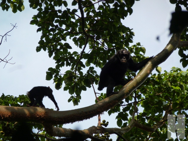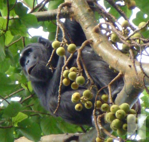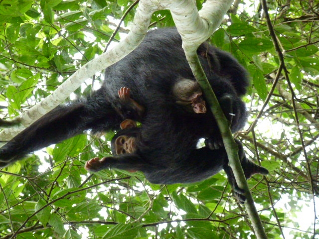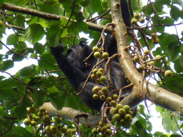 “ระวังมันฉี่ลงมานะ” โจเตือน และอีกไม่นานผมก็เห็นหยดน้ำฉ่ำซ่าลอยลงมาจากกิ่ง....โชคดีที่ไม่โดนผม น้องลิงฝูงนี้มีเป็นครอบครัวด้วย แม่กำลังให้นมลูก ลูกวิ่งไปมาล้อหลอกหยอกกัน และก็มีตัวพ่อที่โดดไปมากิ่งนู้นทีกิ่งนี้ที และเข้าไปผสมพันธุ์กับลิงตัวเมียอื่นๆ ในป่าคิบาเล่มีต้นมะเดื่ออยู่มาก และน่าจะเป็นต้นไม้ที่ชิมแปนซีชื่นชอบทีเดียวเพราะกิ่งไหนที่มีผลอยู่ ผมก็จะเห็นว่ามีลิงจับจองกันไปเสียแล้ว