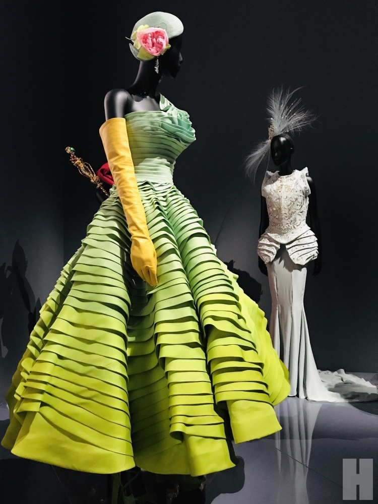 ซึ่งแน่นอน เราย่อมปฏิเสธไม่ได้อีกเช่นเดียวกันว่า Dior มีของดีจะโชว์ให้เราได้เห็น และนิทรรศการนี้ก็ได้รับการ curateมาอย่างพิถีพิถัน ด้วยการแบ่งเป็นห้องต่าง ๆ ที่เริ่มจากห้องประวัติของผู้ก่อตั้ง ที่ก็ต้องมี “New Look” หรือชุด Bar Suit ที่ปฏิวัติการแต่งกายของสตรีมานับตั้งแต่ปี 1955 ให้ได้เห็นกันด้วย จากนั้นก็ตามด้วยการจัด category ของผลงานทั้งหมดจากห้องเสื้อ Dior ว่างานสร้างสรรค์จากแบรนด์ (โดยไม่เกี่ยงว่าใครเป็นดีไซเนอร์) นั้นมีจุดร่วมอะไรบ้าง เช่น ห้องรวมงานที่รังสรรค์ขึ้นด้วยแรงบันดาลใจจากประวัติศาสตร์ ห้องรวมงานที่กลั่นแรงบันดาลใจออกมาจากการท่องเที่ยว ห้องรวมชุดที่รังสรรค์ขึ้นมาอย่างวิจิตรและพิถีพิถันสุด ๆ ด้วยแรงบันดาลใจจากดอกไม้ ฯลฯ ทั้งหมดนี้น่าดูชมและตระการตามาก ๆ เพราะแต่ละชุดที่ curator เลือกมาจัดวางในห้องนิทรรศการนั้น โชว์ให้เห็นทักษะและความละเมียดละไมในการสร้างสรรค์ผลงาน อย่างที่ห้องเสื้อกูตูร์ระดับโลกพึงมี