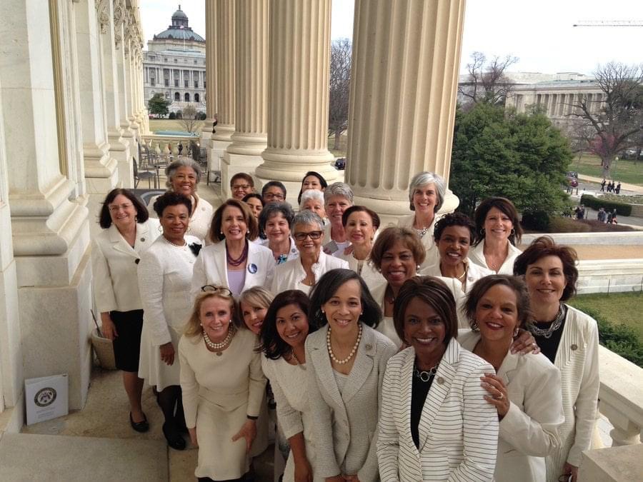 วันที่คุณกมลาอ่านสปีชเปิดตัวเป็นครั้งแรก หลังจากยืนยันว่าได้เป็นรองประธานาธิบดีอย่างไม่เป็นทางการ คุณกมลาใส่ pant suit สีขาว คลุมทับเสื้อผ้าไหมผูกโบว์ ซึ่งทางนักวิเคราะห์ประวัติศาสตร์บอกว่า เป็นความตั้งใจอย่างยิ่งยวด เพราะชุดสีขาวนั้น เป็นสัญลักษณ์ของการเคลื่อนไหวเกี่ยวกับการเมืองของผู้หญิง ย้อนไปในประวัติศาสตร์ สมัยฮิลลารี คลินตันได้รับเลือกเป็นผู้ลงชิงตำแหน่งประธานาธิบดี ก็ใส่ชุดขาวออกมาประกาศศักดา ย้อนไปไกลกว่านั้น Shirley Chisholm สตรีผิวดำคนแรกที่ได้รับเลือกเข้าสภาก็ใส่ชุดขาวเข้าสภา นอกจากนี้ แก๊งสส.หญิงของพรรคเดโมเเครตเคยนัดกันใส่ชุดขาวทั้งชุดเข้าสภาถึง 2 ครั้ง คือในปี 2017 กับปี 2019 ในวันที่ทรัมป์ไปกล่าวสปีชในสภา เพื่อสร้างความตระหนักเรื่องสิทธิสตรีในด้านต่างๆ